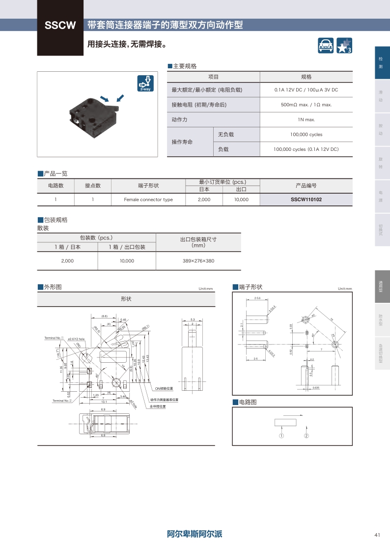 帶套筒連接器端子的雙向動作型。 SSCW系列型號:SSCW110102