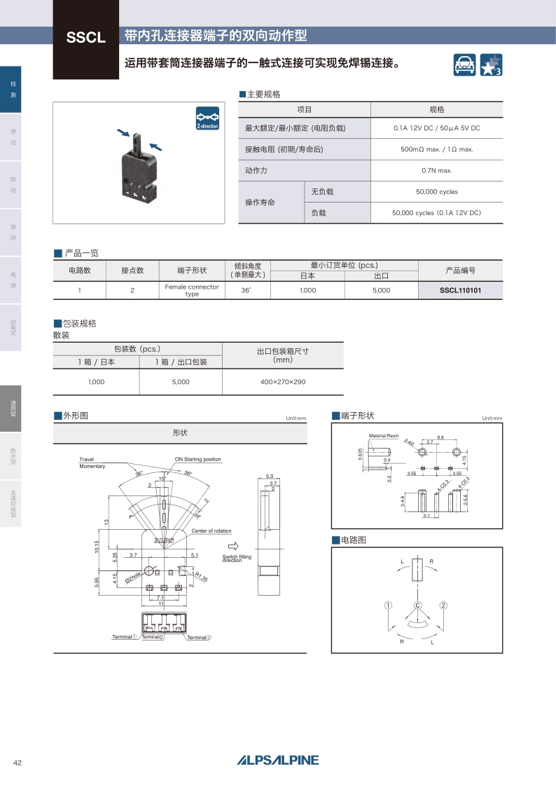 附帶內孔連接器端子的雙向動作型。 SSCL系列型號:SSCL110101
