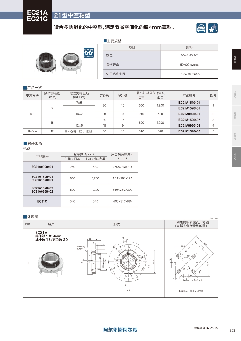 EC21A/EC21C系列——ALPS中空軸編碼器