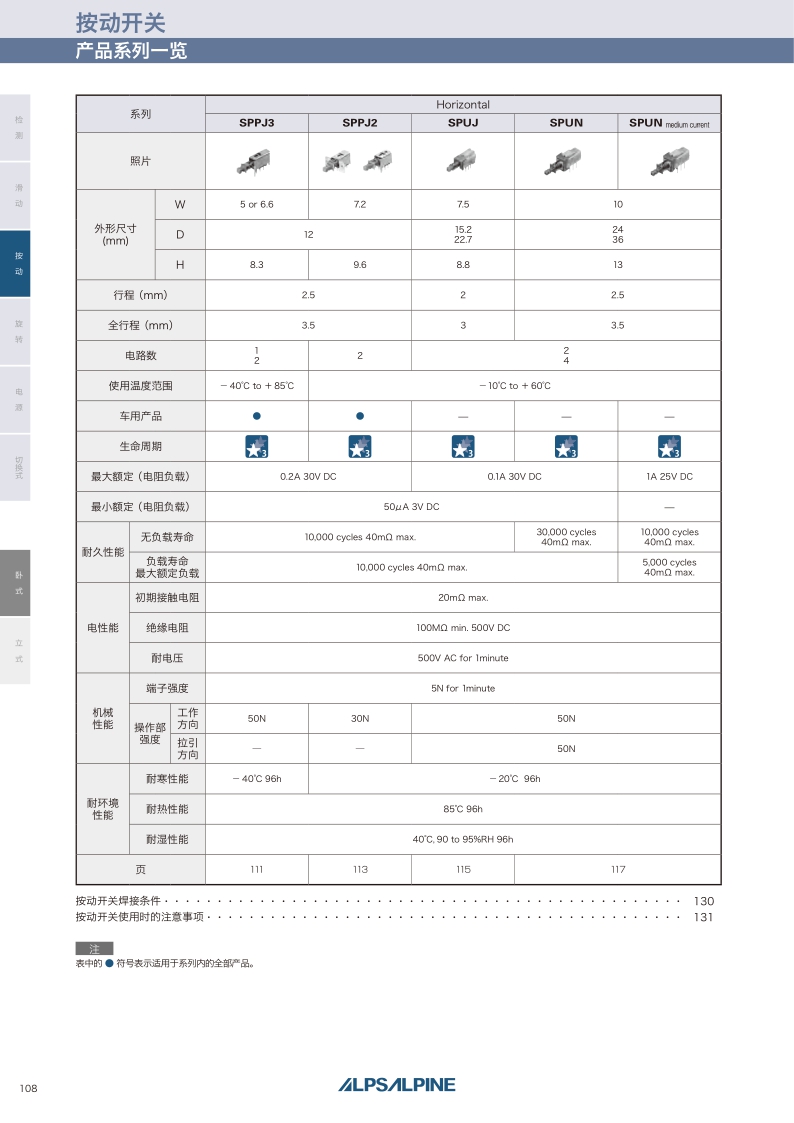 SPUJ系列——ALPS按動(dòng)開關(guān)