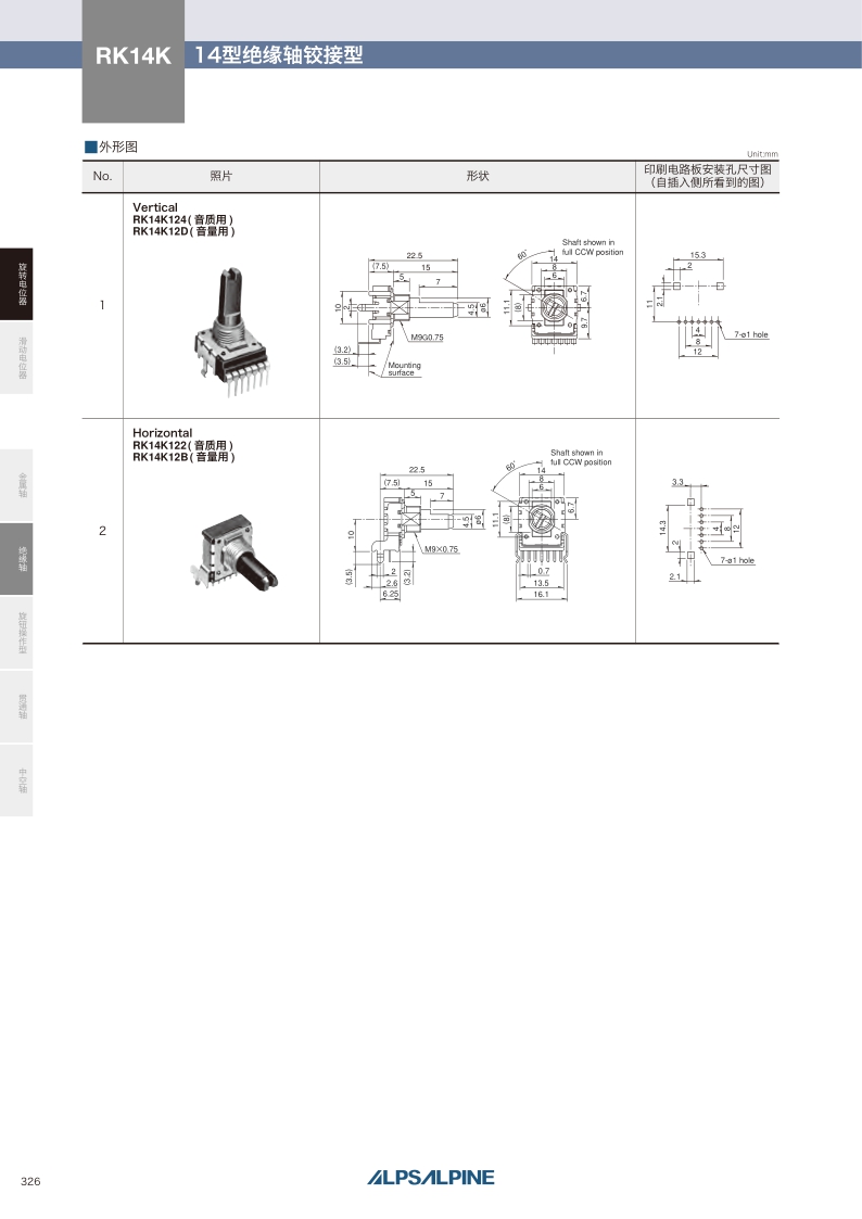 RK14K系列——ALPS絕緣軸電位器