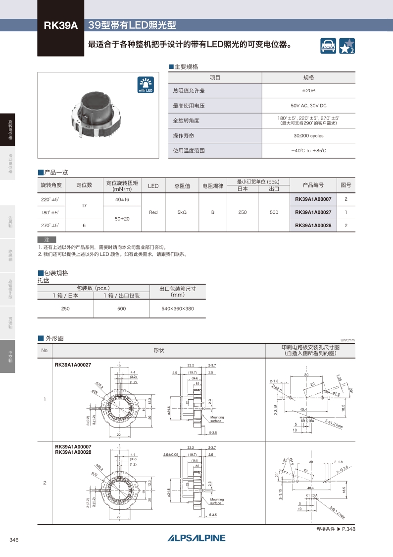 | 產(chǎn)品編號 | 照片 | 尺寸 | 總阻值 | 電阻規(guī)律 | 定位 | 全旋轉(zhuǎn)角度 | 定位扭矩 | LED |