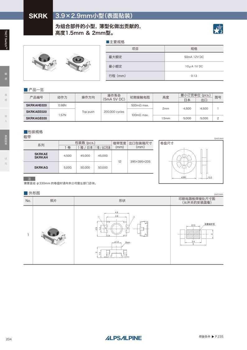 SKRK系列——ALPS輕觸開關