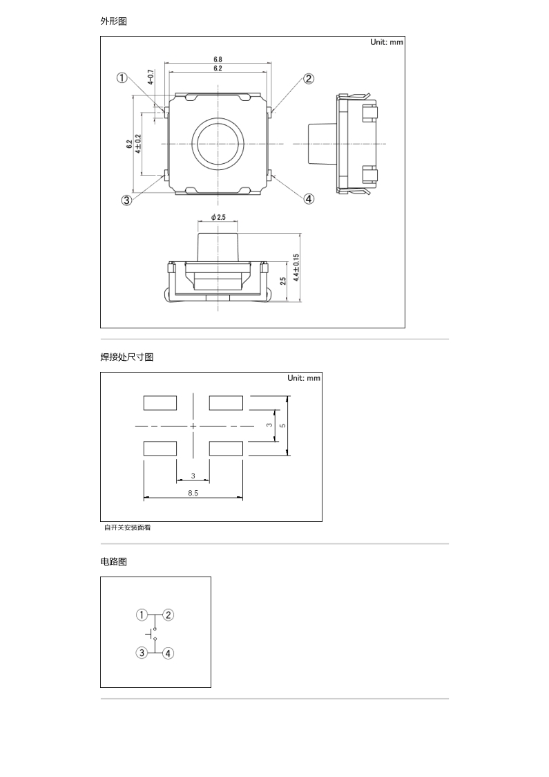 6.2mm方型中行程型(表面貼裝) SKTT系列型號:SKTTABE010