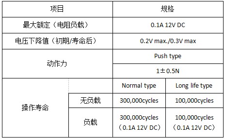 1、3mm移動量的卡夾型接點結構,在微小電流領域發揮出了較高的可靠性。