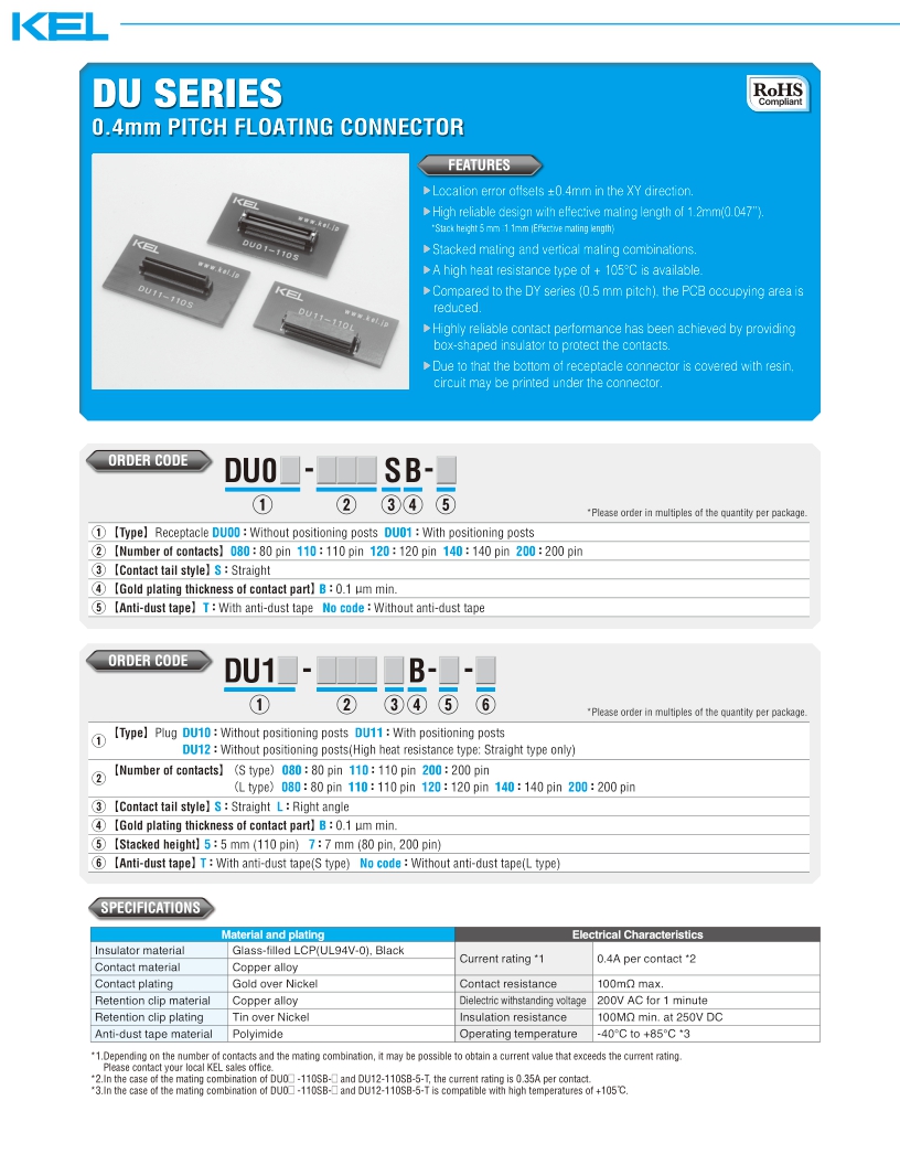 DU系列是業界最小的0.4mm間距底板對底板浮動連接器,專為小型設備開發。業界最小級別的尺寸可以節省底板空間。